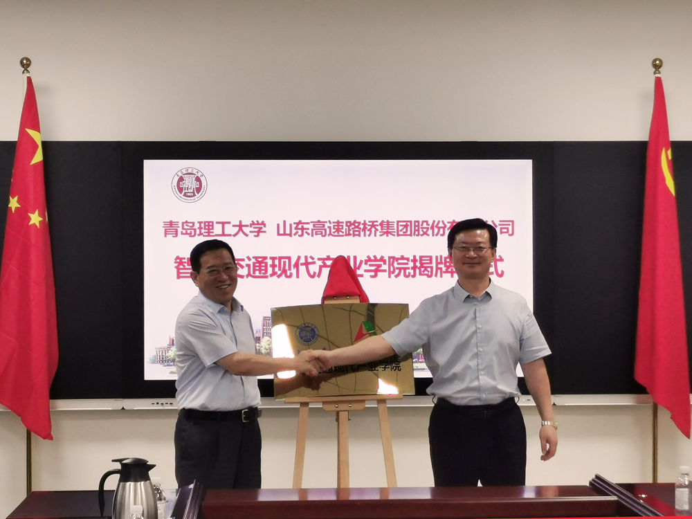 9月26日,由公司與青島理工大學(xué)共同建設(shè)的智慧交通現(xiàn)代產(chǎn)業(yè)學(xué)院成立暨揭牌儀式在青島理工大學(xué)舉行。山東高速集團(tuán)總工程師、山東路橋黨委書記、董事長周新波,青島理工大學(xué)黨委副書記、校長譚秀森共同為智慧交通現(xiàn)代產(chǎn)業(yè)學(xué)院揭牌。