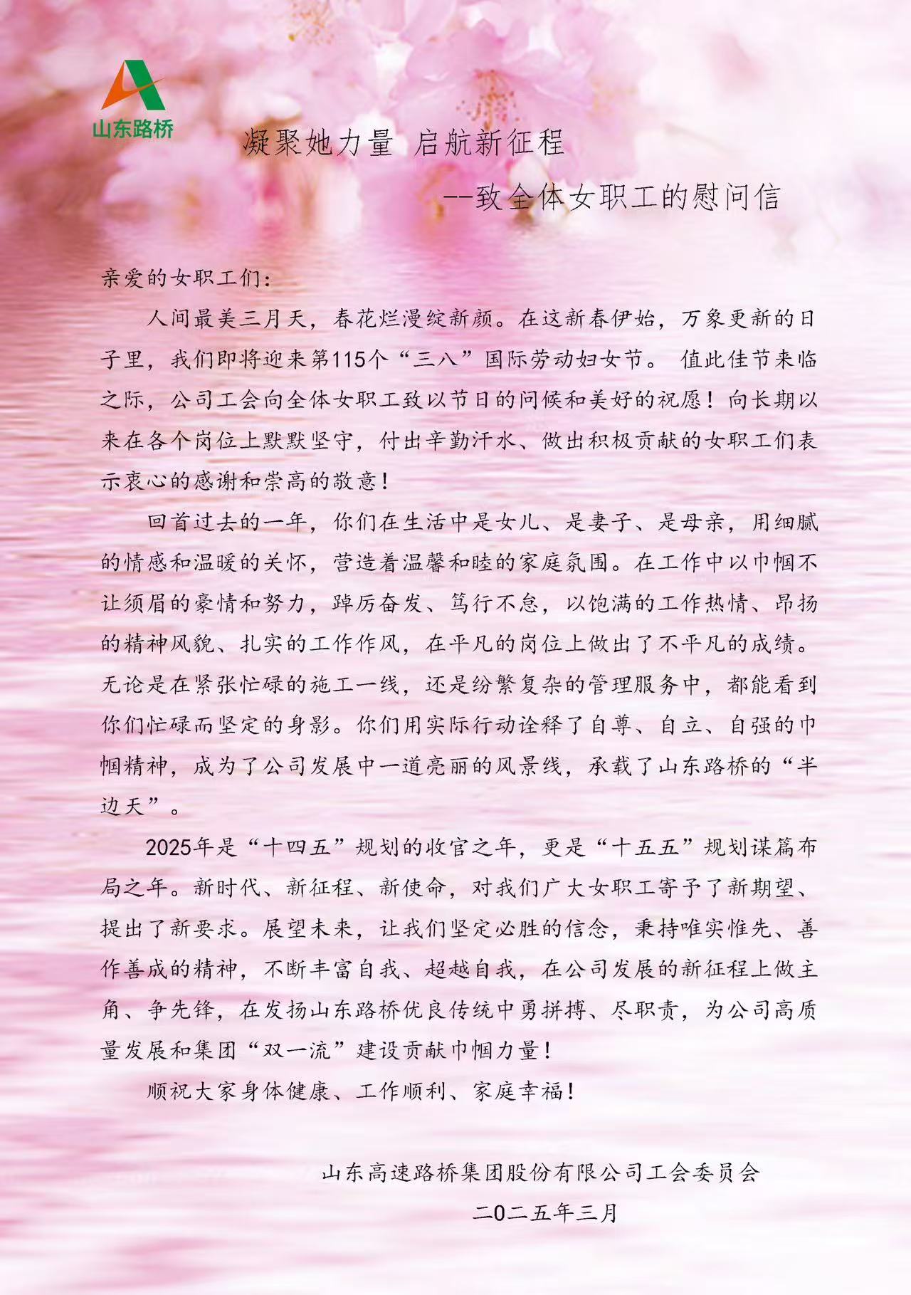 春風(fēng)拂面,百花競(jìng)艷。第115個(gè)國(guó)際勞動(dòng)?jì)D女節(jié)攜著三月的芬芳翩然而至,在這個(gè)禮贊"她力量"的特別日子里,公司總部及各權(quán)屬單位精心策劃了系列女職工專題活動(dòng),以滿園春色般的溫暖關(guān)懷,為巾幗之花送上馥郁芬芳的節(jié)日祝福。